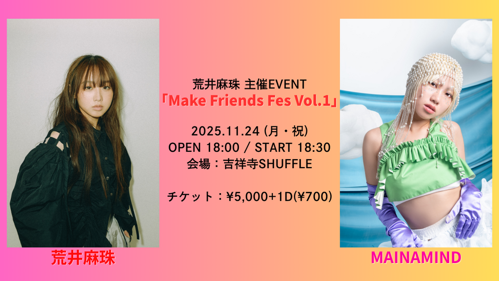 【東京・吉祥寺】荒井麻珠 主催EVENT「Make Friends Fes Vol.1」